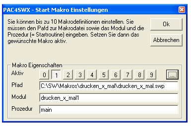 - zum zweiten Mal PAC4SWX starten, diesmal mit dem selbst geschriebenen Makro