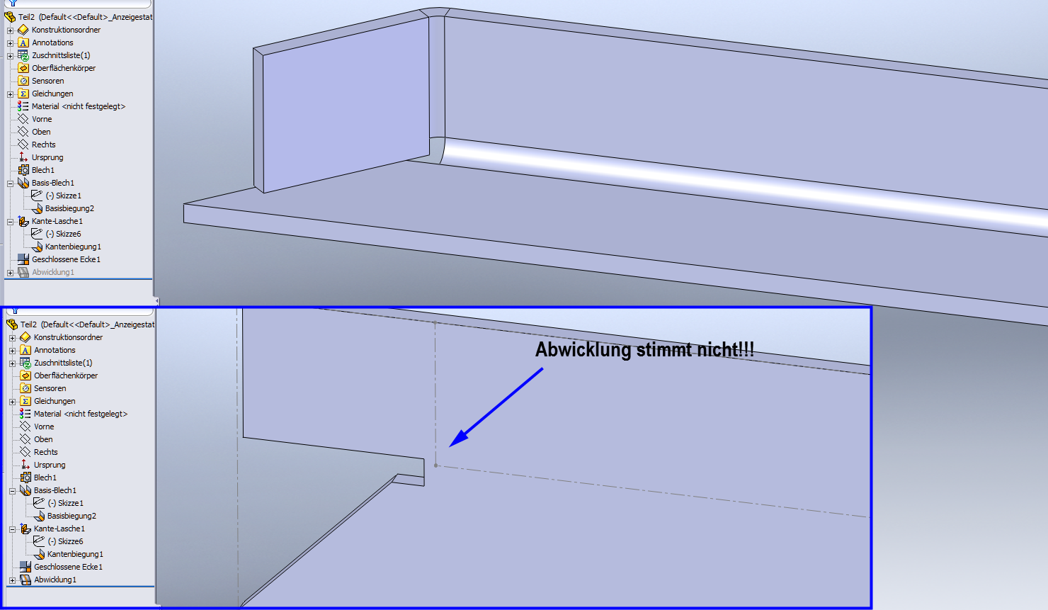 Hallo Stefan Hiermit hab ich es gemeldet. Zusammenhang Blechteile und features. Wir haben hier SWX  2011X64SP4 auf Win7SP1 im Einsatz. Ich erwarte mir nix. Bugs werden sowieso nie ausgebessert, und wenn dann findet man die in der nächsten Version wieder  HopeItHelps lg Alex Eine Antwort auf diesen Beitrag verfassen (mit Zitat/Zitat des Beitrags) IP |