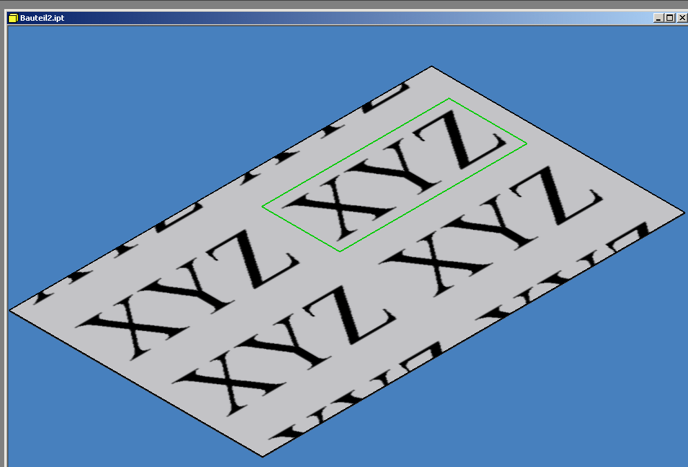 Mal wieder eine "Murphy-Lösung": Passend großes "Blech" als normale IPT machen, 0.1 dick und das dann drauf, gibt also eine iam. Der Aufkleber ist dann dort, wo er hin soll, kann auch abgerundete Ecken oder fast jede Form kriegen. Wenn die Bitmap nicht mitspielt, dann eben in einem externen Proggi passend zurechtmachen. Daß ich das so mach, hat einen einfachen Grund: Die Stückliste...