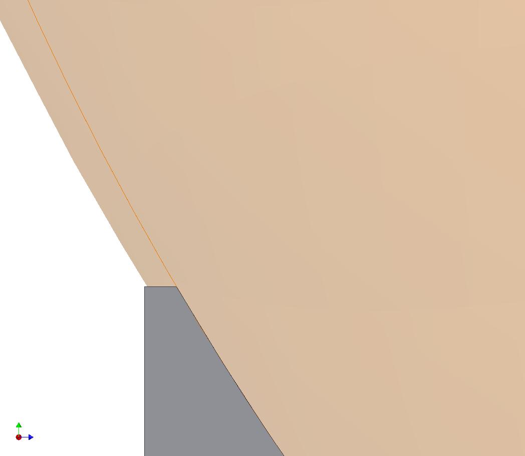 So in etwa? Die Rotationskontur als Fläche erzeugen und nicht als Volumen. Dann darf die Kontur sich auch mit vorhandenem Volumen schneiden. Anschließend eine Ebene erstellen, die durch den Berührungspunkt der Fläche mit der Leitlinie geht. Dann eine 3D-Skizze erstellen, die Schnittkurve zwischen de Fläche und der Ebene erzeugen. Die Leitkurve entlang der Schnittkurve sweepen, anschließend dein Teil mit der entstandenen Fläche trennen. Geht aber sicher noch anders. Grüße