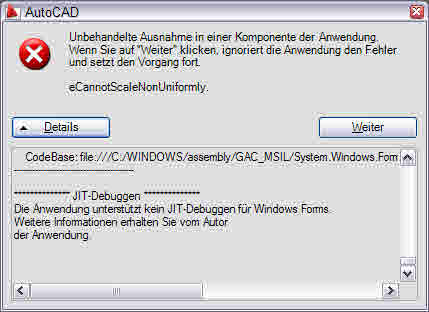 Hallo zusammen, teste gerade die Funktion "Layout in Modell exportieren" Wenn sich einen unserer Planköpfe (und nur dieser eine!) im Layout befindet, bricht ACAD den Befehl mit der angehängten Fehlermeldung ab. Ich werd´ nicht schlau draus. Könnt Ihr damit was anfangen?