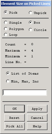 Anna, ich habe bewußt den Umweg über die Flaechen gewählt, damit es bei der Elementzuweisung der Bewehrung nicht viel zu selektieren gibt. Die inneren Linien kann man nämlich ganz einfach und schnell mit dem "Picker" auswählen. --> siehe Bild Wenn man dort das Feld "Box" aktiviert kann man mit zwei Mausklicks alle inneren Linien selektieren. Du hast jetzt alle Linien gewählt, was aber auch nicht so tragisch ist. Dann ist die Stahlmatte halt ein bisserl größer. Der Weg für die Volumenerzeugung in Richtung (+Z) ist richtig. Hatte ich vorausgesetzt, dass Du das weiß mit ASEL. Du hast aber vergessen, die Selektion der Flaechen bei Z=0 wieder aufzuheben. {ALLSEL} oder oben im utility menu: Select > Everything Ich schlage Dir vor, mal über Main Menu > Preprocessor > Meshing > MeshTool zu gehen. Da hast Du dann zentral alle Zugriffe auf die Vernetzung und Elementerzeugung. Bei NUMMRG muß es allerdings NODE und nicht nodes heißen. Den Befehl NUMMRG,NODE kann man eigentlich immer ausführen, da in vielen Fällen koinzidente Knoten nichts zu suchen haben. (Es gibt aber auch Ausnahmen) Die 200 Flaechen bei (Z=0) können mit {ADELE;ALL} oder Main Menu > Preprozessor > Modeling > Delete > Area and Below gelöscht werden.Im "Picker" dann "Pick All" auswählen. Wahrscheinlich gibt es dann eine Warnmeldung, die aber ignoriert werden kann, da Flächen die mit Elementeigenschaften verknüpft sind nicht gelöscht werden können. Die Sache mit dem Block und dem Stab (CYLIN) würde ich erst einmal wieder vergessen. Das kann ziemlich kompliziert werden. Es gibt auch noch sehr viele Möglichkeiten, so eine Aufgabe in ANSYS anzupacken. Wenn es aber um komplizierte Bewehrungspläne geht, dann halte ich persönlich den Umweg über die Flaechen am geeignetsten. Ich habe auch noch mal Band 3: Temperaturfelder rausgekramt; da stehen ja einige Beispiele, wie thermische Lasten auf ein Modell aufgebracht werden können. Eine Antwort auf diesen Beitrag verfassen (mit Zitat/Zitat des Beitrags) IP |