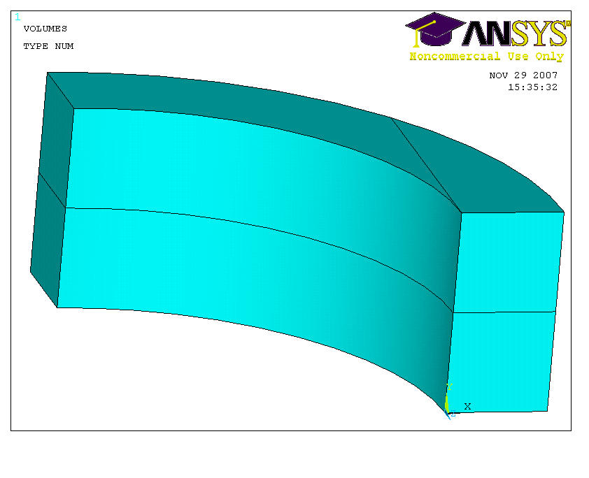 Hallo, wenn du nur den "Viertelkreis" vernetzen willst, wieso erzeugst du dir nicht einfach 1. die zwei Rechtecke in der Y-X-Ebene und unterteilst die Linien mit LESIZE 2. Vernetze die beiden Rechteckflächen mit dem Element MESH200. Dort kannst du dir die Elementform aussuchen 2. erzeuge einen Pfad, der dem Viertelkreis entspricht und unterteile die Linie wieder mit LESIZE 4. Mit Hilfe von VDRAG kannst du nun die beiden Rechtecke entlang des Pfades extrudieren und bekommst deinen Viertelkreis. Auf der Oberfläche befindet sich noch so eine "Unterteilung". Ist die wichtig? Wenn ja, dann müsstest du dir diese Oberfläche als Linien erstellen, wieder mit LESIZE unterteilen und mit MESH200 vernetzen. Dann aber diesmal den Pfad nach unten erstellen und dann mit VDRAG das Volumen erstellen. MfG, Heiner |