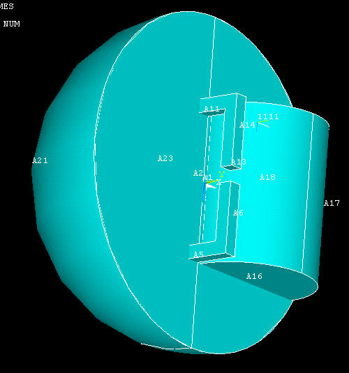 Danke Wosch nochmal für das Beispiel. Hat mir weitergeholfen. Allerdings kann ich bei mir keine Symmetrien zu Nutze machen(Oder??), da es sich in meinem Fall um einen Flächeninduktor(siehe Momentaufnahme oben) handelt und dort die Geometrische Form von entscheidender Wichtigkeit ist. Wie könnte ich es in eine einfachere 2-D Problemstellung überführen??? Jedenfalls habe ich es in der Uni mit der 3-D Problemstellung versucht. Bei der harmonischen Berechnung zeigte sich folgender Fehler. -> " Element (1 bis 4) is an improperly connected degenerate brick element. The database may be corrupted at this point. To proceed, clear the current mesh and create a new one or try to resume....." ET,1,solid97,1 !Flächeninduktor ET,2,solid97,1 !Probe !ET,3,SOLID97 !Luft ET,4,INFIN111 !Randelment ... .. . MSHKEY,0 ! Use free meshin MSHAPE,1,3d ! Use hexahedra 3-D esize,1.5 vmesh,all allsel Leider bin ich jetzt mit der Vernetzung überfragt? Wäre sehr nett, wenn diese zwei Fragen beantworten könnten. Danke Wosch Eine Antwort auf diesen Beitrag verfassen (mit Zitat/Zitat des Beitrags) IP |