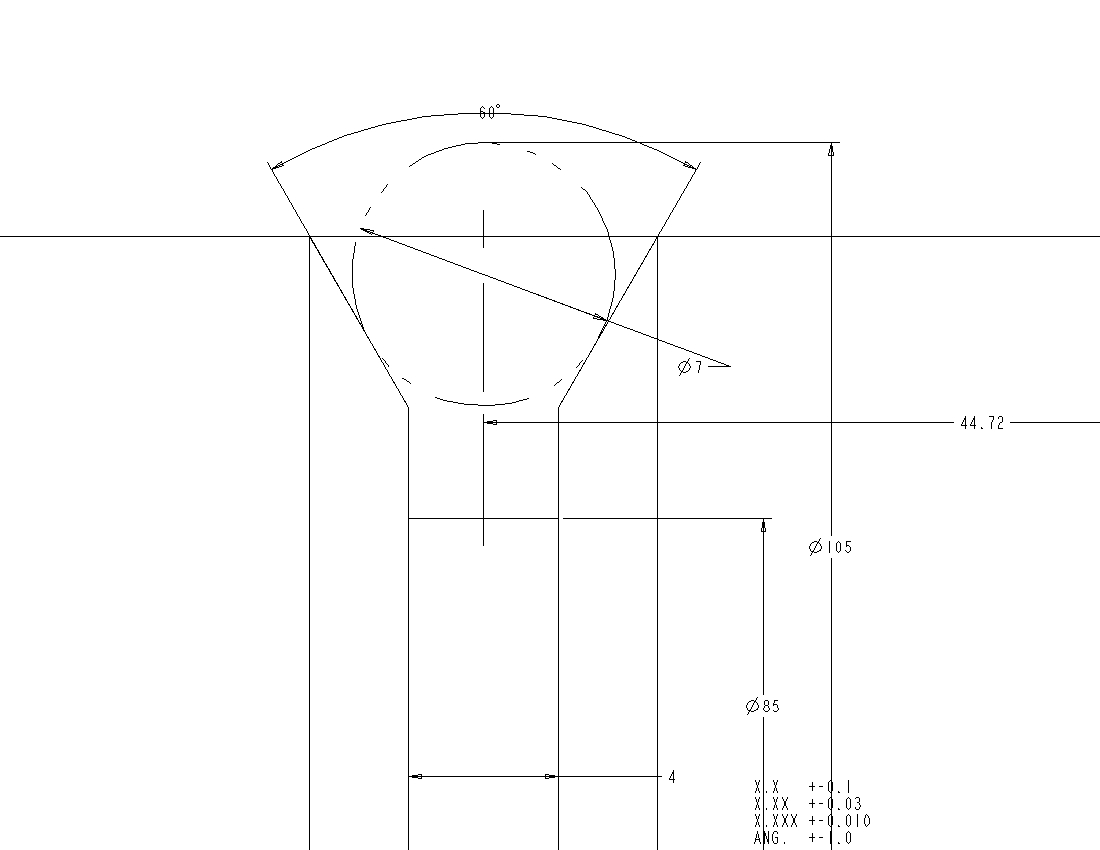 Nun mein Problem. Wie zu sehen ist, wird die Tiefe der 60° Rille durch eine Rolle mit Durchmesser 7 bestimmt (steuernde Bemassung, wird auch so in der Werkstatt gemessen)