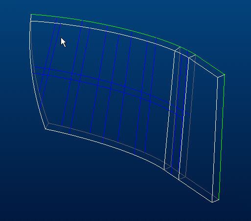 ... endabwicklung kann ueber die gruene stetige flaechde (ohne die blauen meshs) auch gesetzt werden aber pro/e schimpft 'keine abzuwickelnde geometrie'...