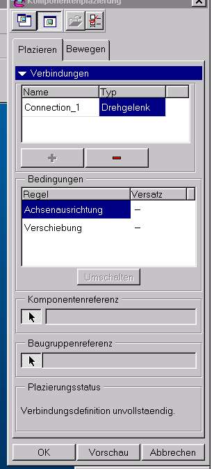 Hallo Das ganze geht mit Mechanism. Im Fenster mit den Einbaubedingungen ist oben eine verdeckte Option "Verbindungen" genannt. Dort kannst du verschiedene Typen von Verbindungen wählen. Vorsicht: Pro Verbindung darfst du nur 2 Teile referenzieren. Du baust die Kurbelwelle in das Gehäuse ein (Du verbindest die Kurbelwelle mit dem Gehäuse) mit dem Verbindungstyp Drehgelenk.