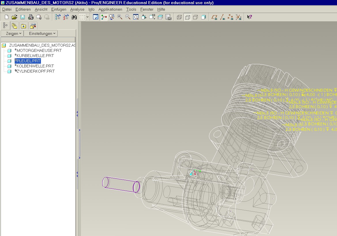 Also, mit Skelett habe ich leider noch keine Erfahrung. Aber für jede anregung wäre ich sehr dankbar... Problem ist, dass wenn ich versuche noch eine Definition hinzuzufügen, wird mir als Plazierungsstatus angezeigt: Bedingungen sind ungültig !! ich denke dadurch, dass der Kolben schon in einer Richtung plaziert ist ( koaxial in Motorgehäuse )wird dieser nicht an das Pleuel angefügt. Gruß Stefan Eine Antwort auf diesen Beitrag verfassen (mit Zitat/Zitat des Beitrags) IP |