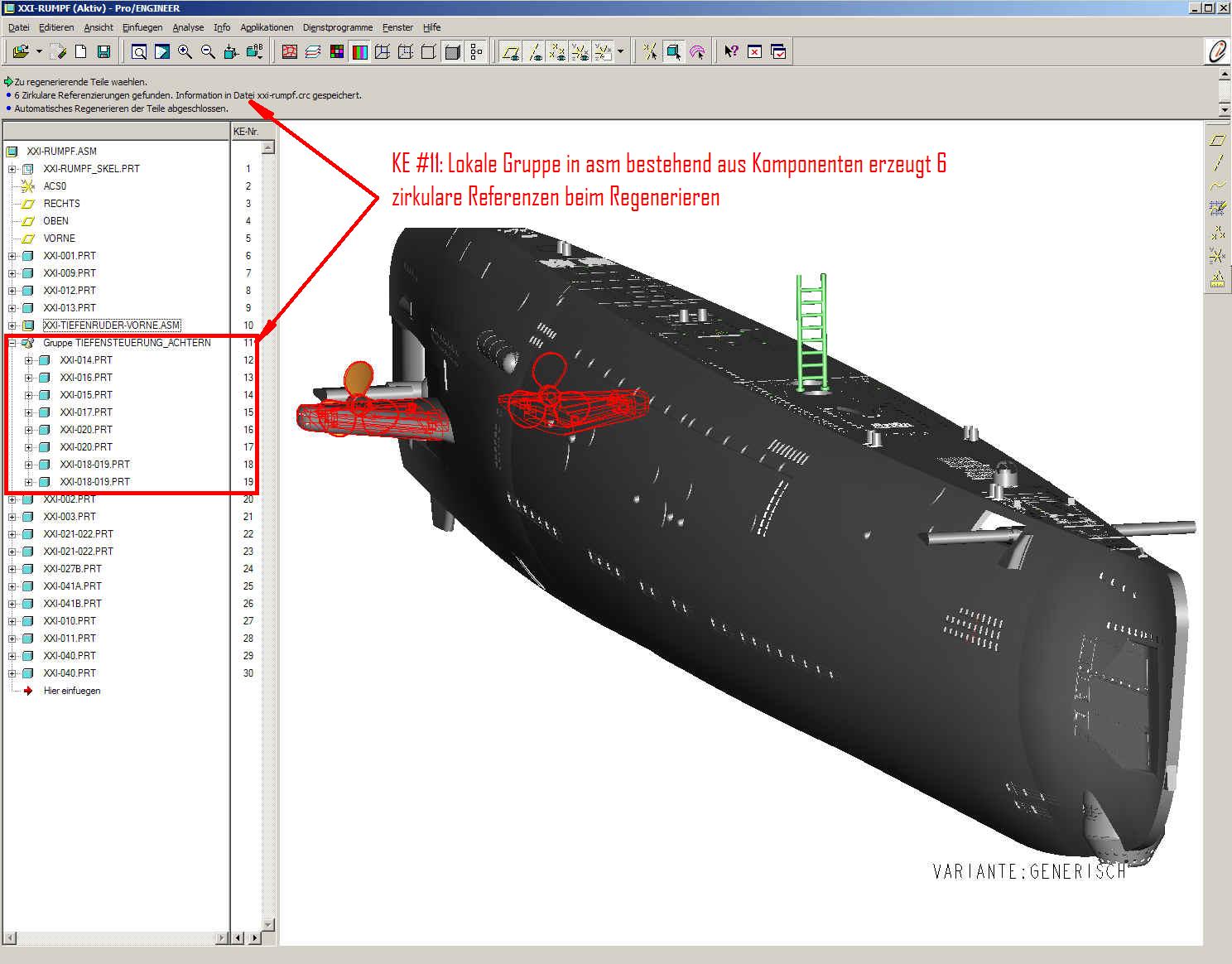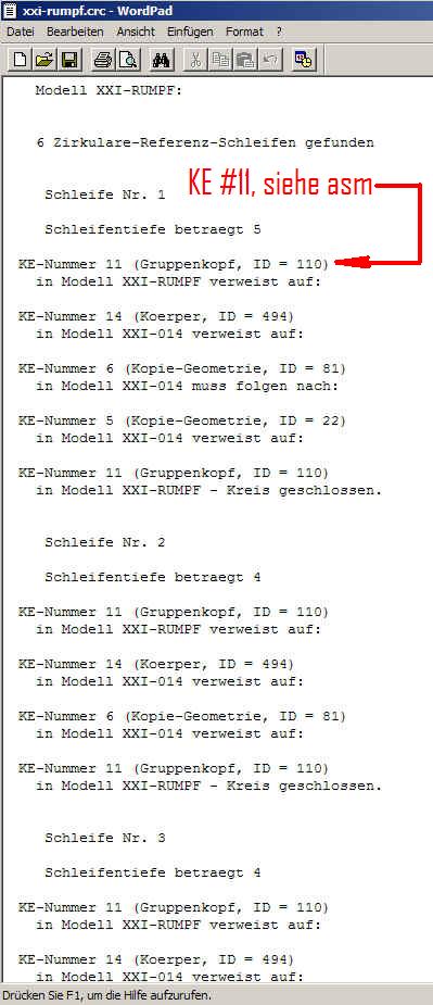 Ich habe die betreffenden Strukturen der besagten Unterbaugruppe mit dem Golbalen Ref-Viewer untersucht und konnte nichts finden. Als ich aber dann im Modellbaum nach dem gemeldeten KE der Baugruppe forschte, fand ich die Ursache:
