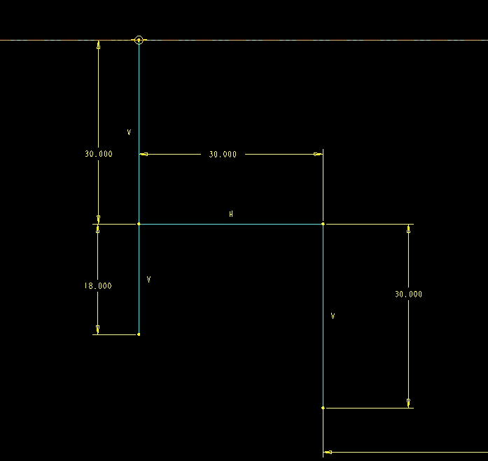 nehmen wir mal die horizontale 30 mm lange linie. die linien, die jetzt hier gezeichnet sind, haben aber an den endpunkten keine bedingungen, dieser kleine punkt bedeutet zwar, das endpunkte aufeinanderliegen aber es gibt keine bedingungen (kann man ueberpruefen, wenn man im bedingungs-manager ist und auf erklären geht)