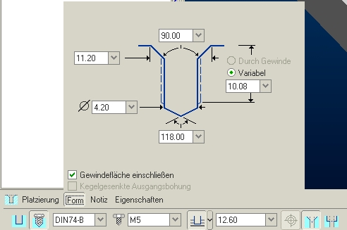 Hallo Calvin, ich weiß nicht, ob ich Dein Problem richtig verstanden habe. Du mußt erst die Bohrungstiefe auf "Durch Alle" setzen. Dann kannst Du aus einer Gewindebohrung eine Durchgangsbohrung machen (die Option "Bohrloch gewindeschneiden" deaktivieren). Kann man nach längerer Überlegung sicherlich nachvollziehen. Man kann sich aber streiten, ob man ein so schlaues System haben möchte ;o) Ich will Dir Deine UDFs + Mapkeys aber nicht ausreden. Ist sicherlich der schnellere Weg. Gruß Thomas Eine Antwort auf diesen Beitrag verfassen (mit Zitat/Zitat des Beitrags) IP |