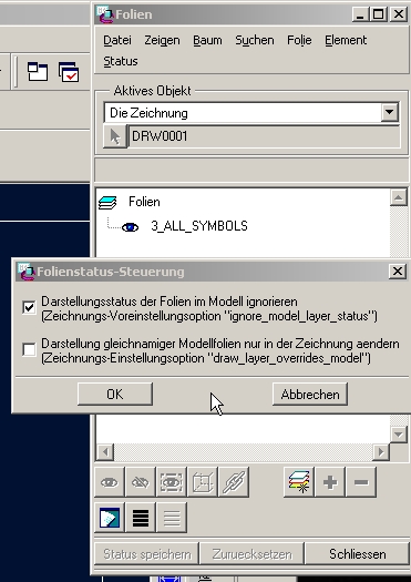Es gibt noch eine Einstellung, die besagt das Einstellungen vom Teil übernommen werden. Habe hier nur die 2001, aber vielleicht findest Du es ja auch so oder so ähnlich wieder. Die Einstellung kann man im Folienmanger unter #Status#Voreinstellungen machen und es sieht dann wie folgt aus. --->Bild HTH ------------------ Gruß U. Süß Eine Antwort auf diesen Beitrag verfassen (mit Zitat/Zitat des Beitrags) IP |