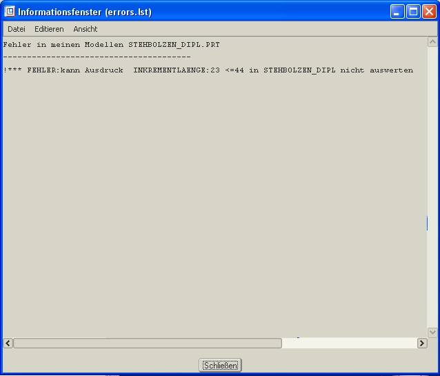 Hallo zusammen, ich habe ein gesteuerte Schraube in einer Baugruppe erzeugt, die auch wunderbar funktioniert. Für die Dokumentation meiner Diplomarbeit habe ich ein zweites System aufgebaut und mir genau diese schraube in das neue Arbeitsverzeichnis kopiert. Die Parameter habe ich hinsichtlich der Sitzungs-ID brav abgeändert und das ganze funktioniert auch soweit. Das Modell wird auch regeneriert, jedoch wird dabei folgendes Fenster geöffnet. Kuckst Du Bild !! Änder ich in den Beziehungen den Wert 44 auf X, wird in dem Fenster nach wie vor die gleiche Meldung rausgegeben. Was kann da schief gelaufen sein ?? Gruß Stefan Eine Antwort auf diesen Beitrag verfassen (mit Zitat/Zitat des Beitrags) IP |