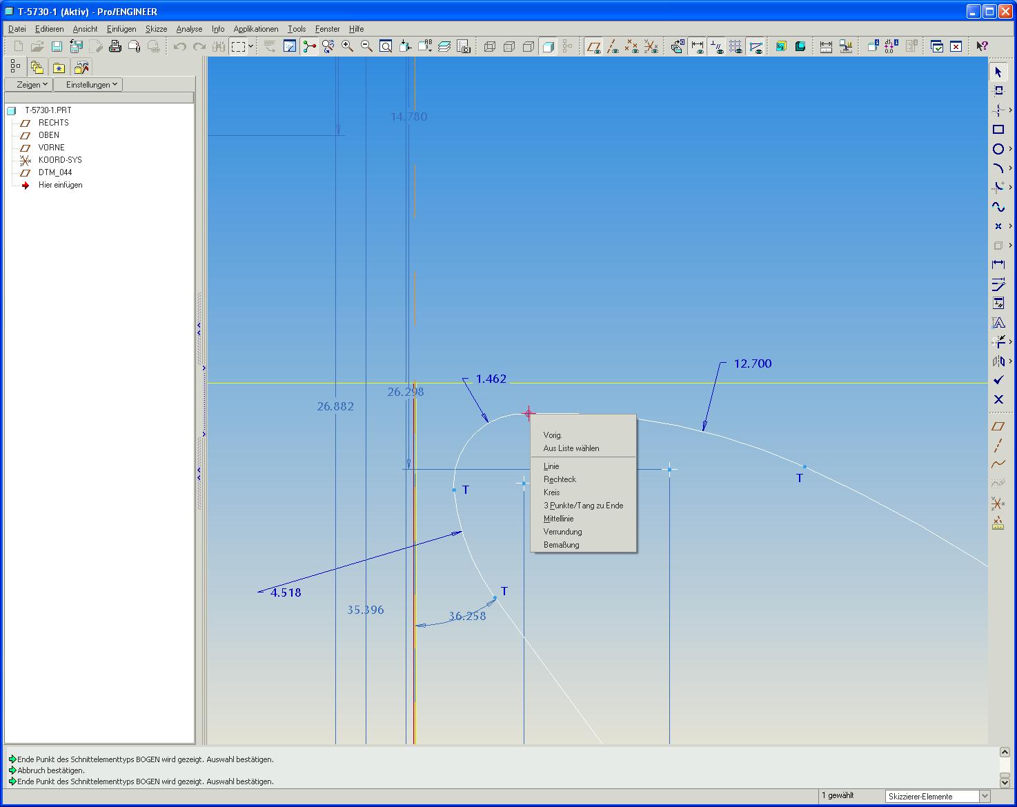 Hallo sadolf, das ist mein erster Versuch eine Turbinenschaufel in Pro/E zu erstellen. Vielleicht mach ich ja irgendwo einen grundsätzlichen Fehler. Aber ich hatte das so verstanden das zur Erzeugung des eils der Skizzenzug geschlossen sein muss. Deshalb hab ich mir die größte Mühe gegeben ja alle Kurven miteinander zu verbinden. Dann gibt es aber leider keinen Endpunkt mehr. Das andere ist, ich bekomme in der Bedienleiste "Skizze " nur angezeigt wenn ich die Skizze editiert habe. Sonst sehe ich meine Punkte duch auch garnicht. Bin für jeden Tipp offen da mir schon vor ein paar Stunden die Ideen ausgegangen sind, was ich denn noch auprobieren könnte. Eine Antwort auf diesen Beitrag verfassen (mit Zitat/Zitat des Beitrags) IP |