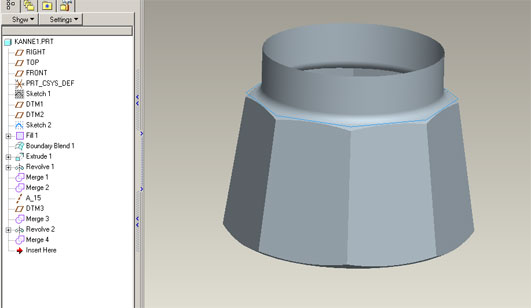 Hallo Leute, ich bin Produktdesign-Student und bin seit einigen Monaten dabei, Proe zu lernen. Hier meine Frage: ich baue gerade den Espressokocher von Bialetti nach (dit merwürdige achteckige Ding aus Alu). Ich habe sie aus surfaces aufgebaut und möchte dann den einzelnen Teilen die entspechenden Wandstärken ("thicken") zuweisen. Das untere Teil des Espressokochers ist ein achteckiger Kegelstumpf, er läßt sich allerdings nur nach außen dicken, da die einzelnen Seiten des achteckigen Kegelstumpfes sich übereinschneiden würden bein Dicken nach innen (overlapping). Kann man denn generell eckige Hohlkörper nicht nach innen dicken? (denn es entsteht ja immer eine Überlappung) Wäre jetzt die richtige Vorgehensweise, das Teil um die Wandstärke runter zu skalieren und dann nach aussen zu dicken? danke für die Antwort (auf diese Anfängerfrage, die aber grundlegend ist) Eine Antwort auf diesen Beitrag verfassen (mit Zitat/Zitat des Beitrags) IP |