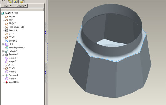 du meinst, die einzelnen Flächen des achteckigen Kegelstumpfs trennen oder gleich einzeln aufbauen, dann dicken und dann verschmelzen? Ich habe allerdings den Körper als eine einzige Fläche gebaut, die zwischen zwei achteckigen sketches gespannt ist. Eine Antwort auf diesen Beitrag verfassen (mit Zitat/Zitat des Beitrags) IP |