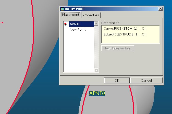 ...bei ProE 2001 erzeugt man diese Punkte mit der Option "KurveXKurve". Wenn sich die beiden Kurven nämlich nicht schneiden, dann wird der Punkt auf Kurve 1 an der nähesten Stelle zu Kurve 2 erzeugt. (Im "Perikurv" sozusagen...  ) ------------------