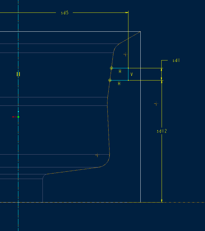 Hallo! ich versuche verzweifelt mit ProE 2001 in einem Rotationskörper einen Materialschnitt einzubringen, welcher mehrere KEs als Referenz bräuchte (siehe Bild). Wenn ich den MS erzeuge, wandert beim  Verschieben des MS der Bezug nicht entlang der Referenzkette, sondern auf dem Referenzelement, auf dem er erzeugt wurde.Wenn ich darüber hinaus diesen MS mit der Körperfläche verrunden will, gehen mir beim Verschieben (Mass sd12) die Rundungen flöten, weil die Referenzen fehlen.