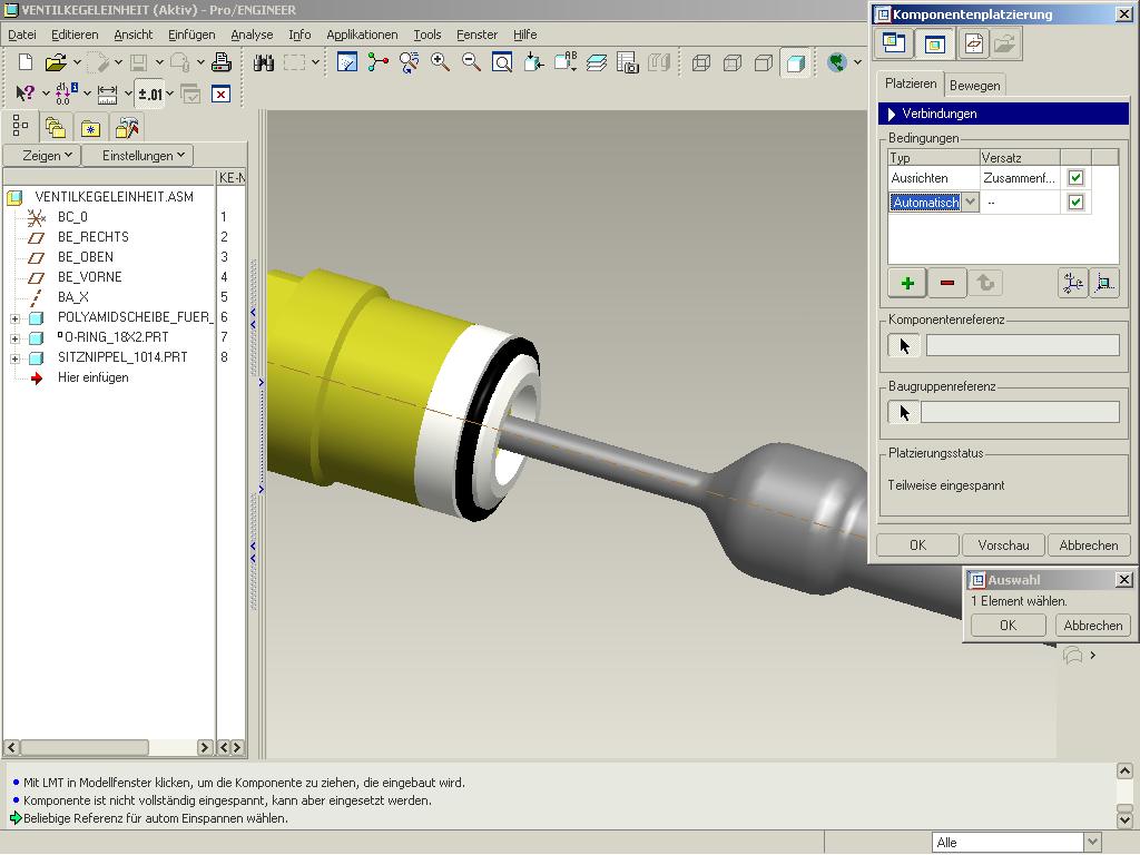 Hallo, ich habe ein Problem beim Einbau einer Komponente. Ich hab einen Screenshot als Anhang reingesetzt. Dort sieht man einen Ventilkegel (grau) und den dazugehörigen Sitz aus Polyamid (weiss). Der Kegel soll mit der schrägen Fläche genau auf der Kante des Sitzes aufliegen. Ich könnte das zwar "so inetwa" hinschieben, aber das wäre ja dann nicht genau. in der Komponentenplatzierung kann ich diese Teile nicht zusammenfügen, hab schon alles versucht. Habe ich etwas übersehen? Danke schonmal. ------------------ "Viele Grüsse" "aus Stuttgart!!!" Eine Antwort auf diesen Beitrag verfassen (mit Zitat/Zitat des Beitrags) IP |