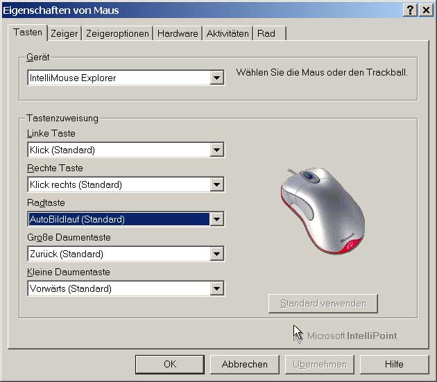 Jetz aber mal halblang! Wenn jeder gleich als allwissender Superuser auf die Welt käme, bräuchten wir ja wohl kein Forum, oder? Man kann ja nun wirklich mal was nicht gleich aus dem Stand wissen - dazu ist unser Forum schließlich da. Ich habe vor kurzem auch in der Forumssuche gewühlt, um einem Youngster auf die Sprünge zu helfen und die Beiträge mit der mittleren Maustaste verstecken sich echt gut... Also lieber Fragesteller: Die Frage hatten wir schon öfter, entweder mit verstellten Einstellungen, ader auch mal mit Problemen bei MS-Mäusen. Guck mal nach Deinen Einstellungen oder such ein bisschen hier im Forum. ------------------ Viele Grüße aus Heilbronn & Umgebung, Michael. Eine Antwort auf diesen Beitrag verfassen (mit Zitat/Zitat des Beitrags) IP |