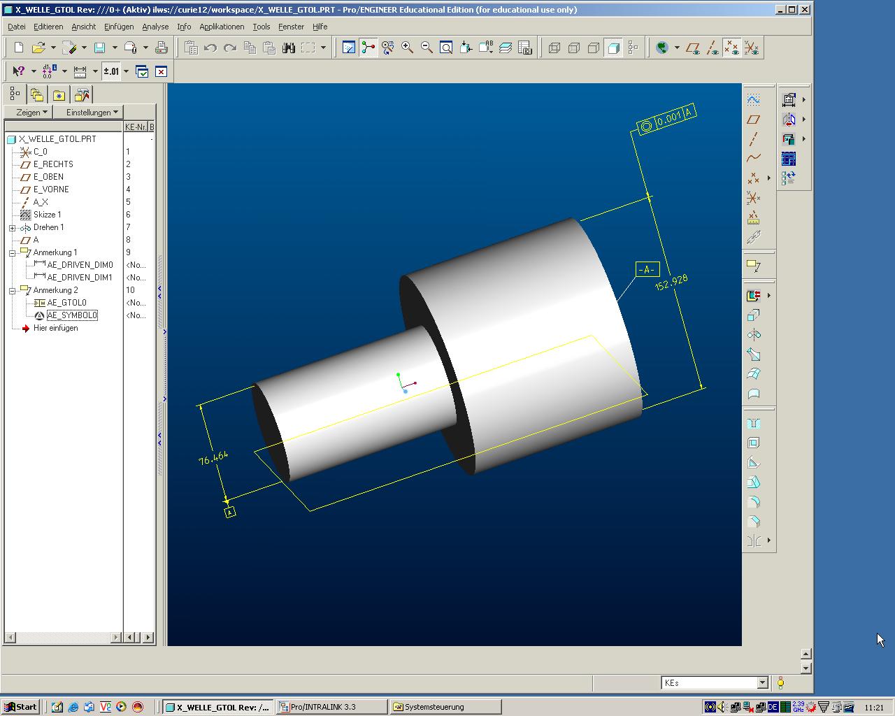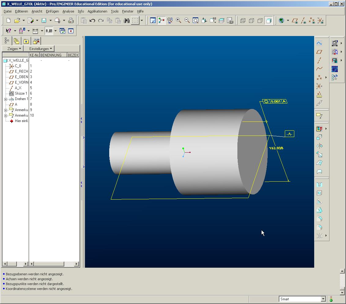 Warum noch ein Workaround Es geht schließlich auch ohne zusätzliche Ebenen. Warum wird eigentlich die vorhandene Möglichkeit von Pro/E nicht genutzt? Zu der Aussage, dass dieser Bezug auch im Zeichnungsmodus verwendet werden kann, kann ich nur sagen: IMHO geht jeder im Modell erzeugte Bezug in der Zeichnung zu verwenden. Außer der Bezug ist Schwachsinn für die jeweilige GTOL.