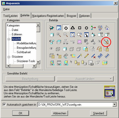 Hallo cadkd, versuche mal über Ansicht->Auswechseln den Arbeistraummanager aufzurufen. Hier kannst du nun nach belieben Arbeitsräume definieren und Teile Einschließen oder Ausschließen. Einschließen bedeutet man sieht diese Teile nicht. Anschließend auf Ansicht->Auswechseln gehen und den zuvor definierten Arbeitsraum auswählen. Die eingeschlossenen Teile sind nicht mehr sichtbar. ------------------ Dell M50, 2Ghz, 1Gb, 700GoGL, W2K, M150, ILINK 3.3 [Diese Nachricht wurde von COMPUTERSPACE am 05. Apr. 2006 editiert.] Eine Antwort auf diesen Beitrag verfassen (mit Zitat/Zitat des Beitrags) IP |