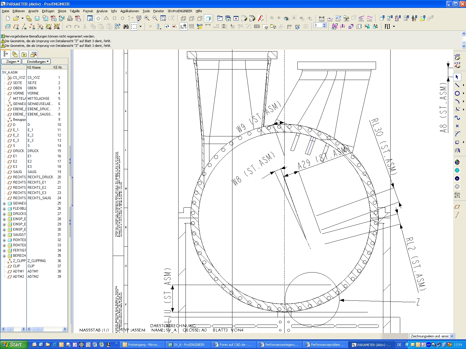 Hallo Proeler, ich habe mal wieder ein unlösbares Problem . Ich habe in einer Baugruppe Querschnitte erzeugt und möchte mir diese in der Zeichnung anzeigen lassen, das funktioniert auch einigermaßen, nur das ProE (Wildfire 2.0, Version 220) das davor nicht verschwinden lässt (siehe Bild: die ganzen Bohrungen sollten eigentlich nicht zu sehen sein) . Hat jemand eine Ahnung? Vielen Dank im Voraus Gruß Rosario