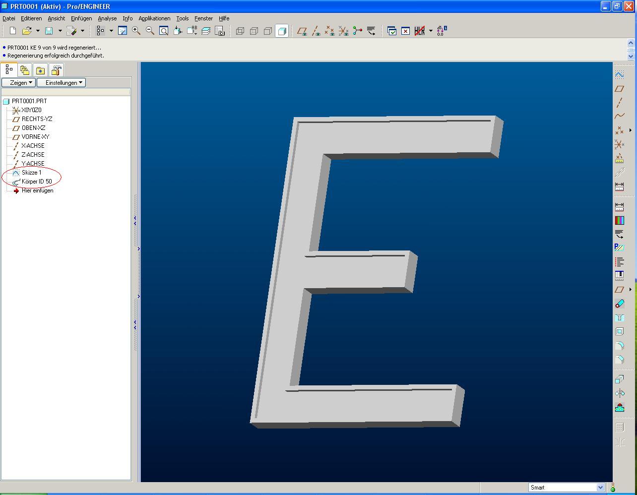 Zitat: Original erstellt von FCK_FAN_Viktor: Keine Ahnung,muss ja die Herzform nicht bearbeiten.Mal was anderes: Sind Teilmodellierungen,wie hier das "E" zb. von Wildfire 3.0 auf 2.0 übertragbar. Sitz heute nämlich an einem Rechner,der Wildfire 2.0 hat,und da lassen sich die anderen Buchstaben,die ich gestern mit Wildfire 3.0 gemacht habe,nicht öffnen.