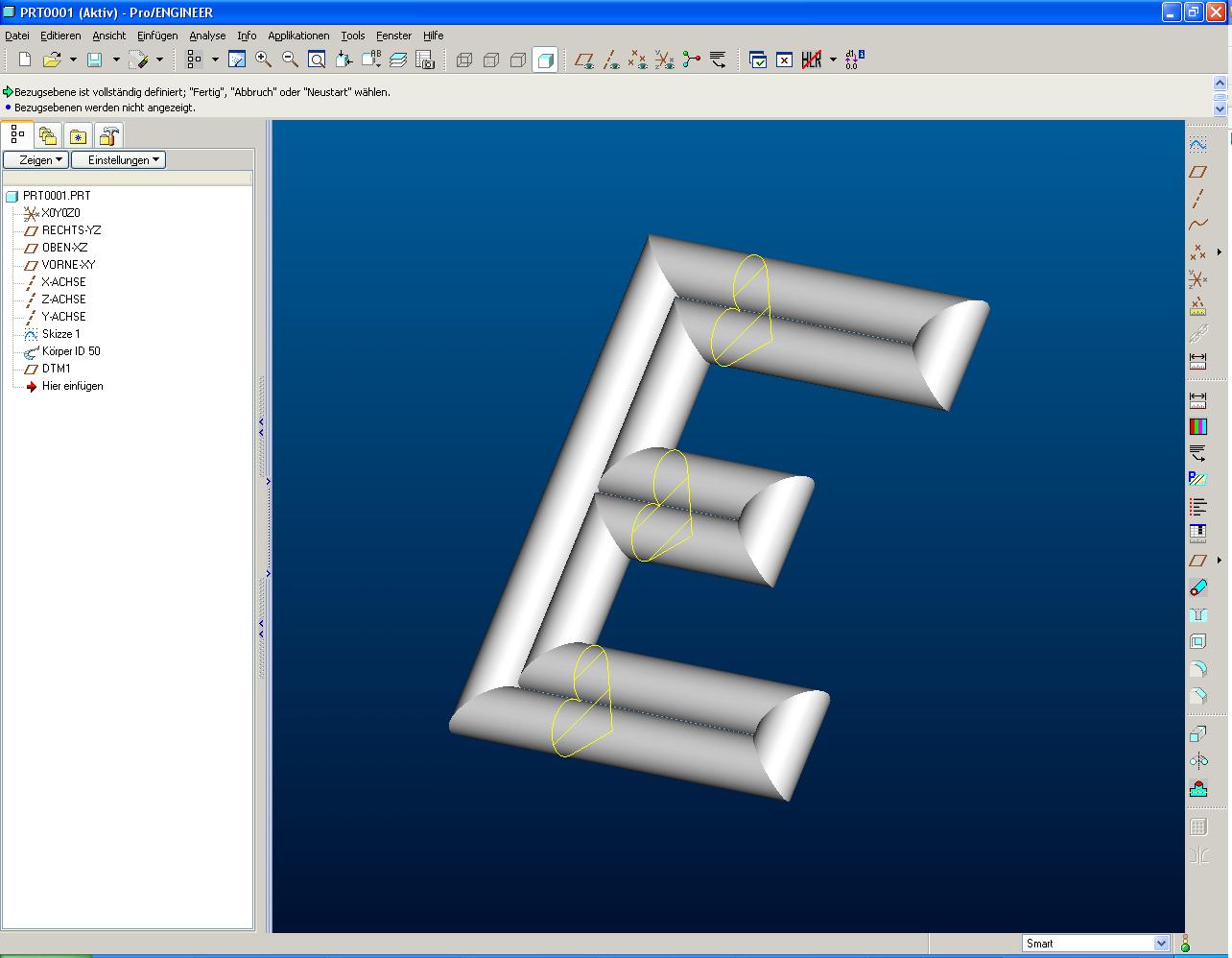 Die Leitkurve hat einen Start- und einen Endpunkt. Diese können aber auch identisch sein. Schau dir doch mal mein E an. [/QUOTE] Achso hast du das gemacht,das E sozusagen umrundet,richtig ? Da sind die Enden aber geschlossen und ich brauch das E,wie U_Suess es in seinem Bild hat. Auf jeden Fall aber hab ich es hinbekommen,so wie ich das aufgezeigt habe. Erst ein "[" als Ziehkörper gebildet,dann den inneren Balken als Profilkörper dazugemacht und schließlich 2 unnütze Innenkanten ( so wie im 2 Bild in diesem Thread im Bild zu sehen ist) wieder rausgeschnitten. Fehlt mir noch das "T",welches ich auf die gleiche Weise gleich machen werden.