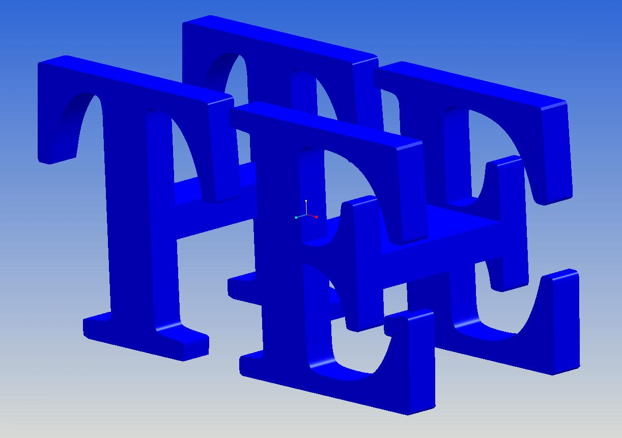 Ausser natürlich, Du stattest die Leitkurve, welche den Buchstaben beschreibt mit ausreichen großen Radien aus und ziehst dann mit Einfügen->Ziehen->Körper (zumindest ists in WF2 so) Dein Doppel-T-Profil entlang.