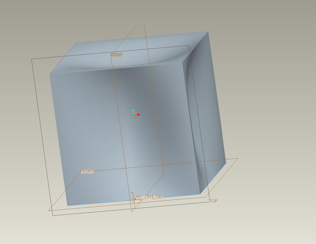 Frage vorab: Soll "der Vogel von innen hohl" werden ?! - oder auch eine/mehrere Seiten "verlieren"? Jepp, gibt es, naja vielleicht nicht grundsätzlich... Bis zum Würfel geht's noch ganz "normal", von da an hast Du zwei Möglichkeiten: 1. über Freiformflächen (VolumenFreiform) mit anschliessendem "Flächen ersetzen" (#Flächenversatz...) 2. "Dom Radius", bietet sich an, ist masslich geometrisch bestimmt und somit gleichmässig auf alle Würfelflächen anwendbar. ABER: diese Feature muss erst "freigeschossen" werden über die config.pro mit dem Eintrag: "allow_anatomic_features YES". Dann erscheint in den "Advanced Features" unter anderem auch "Radius Dom"... Einem Ausschalen sollte anschliessend nichts mehr im Wege stehen... Kalle_ok ------------------ Eine Antwort auf diesen Beitrag verfassen (mit Zitat/Zitat des Beitrags) IP |