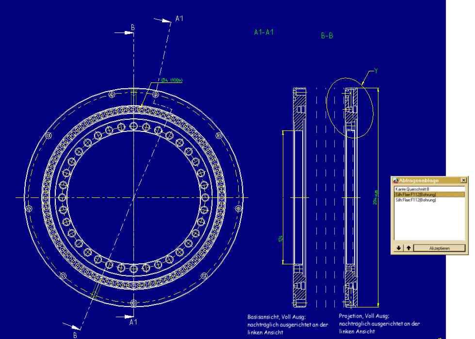 Hallo Stephan, also, mir persönlich ist es recht, wenn du mir/uns mal erklärst, wie du diesen komplexen schnitt hinbekommen hast? ich habe mir so ein ähnliches Teil mit gleichen Schnittverlauf gemacht...jedoch frage ich mich wie du diesen schnitt in die DRW bekommen hast?? Also, ich kann den schnitt noch nicht mal im PRT, geschweige denn in der DRW, zeigen lassen, im JPEG ist dieser nur auf "Sichtbarkeit" eingestellt...Habe es mit schnittverlauf eines Stufenschnitte definiert. und wie kommst du darauf, auf einmal Zitat: ....bloss dann keine Ansichten verschieben!!!!