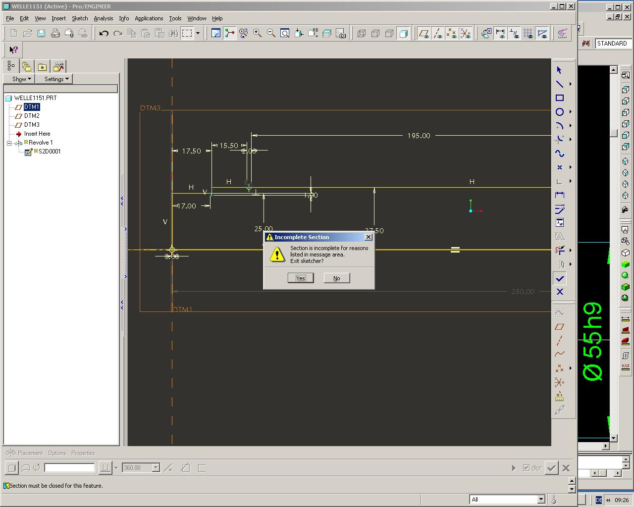 1. Deine Shift-Taste ist kaputt. 2. Dein Pro/E ist auf englisch gestellt - sonst käme eine verständlichere deutsche Fehlermeldung. 3. Deine Skizze ist nicht geschlossen - das wird auch auf Deinem Bild in der "message area" (Textzeile ganz unten) angezeigt. Das kann von einer nicht geschlossenen Skizze kommen (Rechteck aus drei Linien  ) oder evt. aus doppelten Linien. ------------------ Guten Morgen - und falls wir uns nicht mehr sehen - guten Nachmittag, guten Abend und gute Nacht! (Truman Burbank in "Die Truman-Show") Eine Antwort auf diesen Beitrag verfassen (mit Zitat/Zitat des Beitrags) IP |