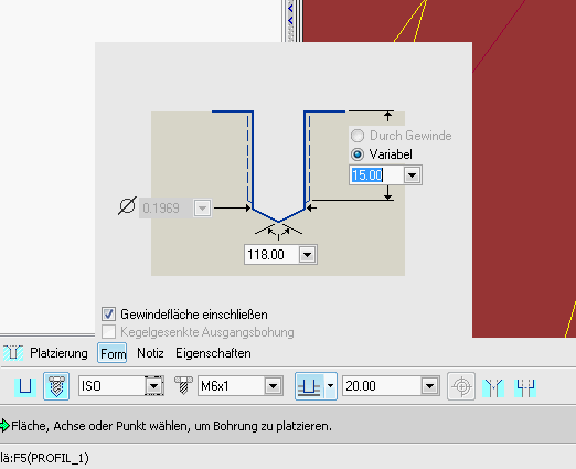 Mit KernØ = 0,8 x Mx kommt man gut weiter, weil sowieso jeder Bediener seinen Lieblingsbohrer/-fräser nimmt und nur M6 liest und ihm der Rest meistens egal ist. Laut Norm haben die Gewinde mit Standardsteigung folgende KernØ: M4 = 3,141 M5 = 4,019 M6 = 4,773 M8 = 6,466 Gib die bitte nicht an, ich bin das damals (im Nachinein) zurecht ausgelacht wurden, als ich die angegeben habe. Frag in der Fertigung nach, was verwendet wird. Laut Norm muss es nicht bemaßt werden, weil mit den Maßen M6, Gewindetiefe und Kernlochtiefe eigentlich alles gesagt ist. Eine Antwort auf diesen Beitrag verfassen (mit Zitat/Zitat des Beitrags) IP |