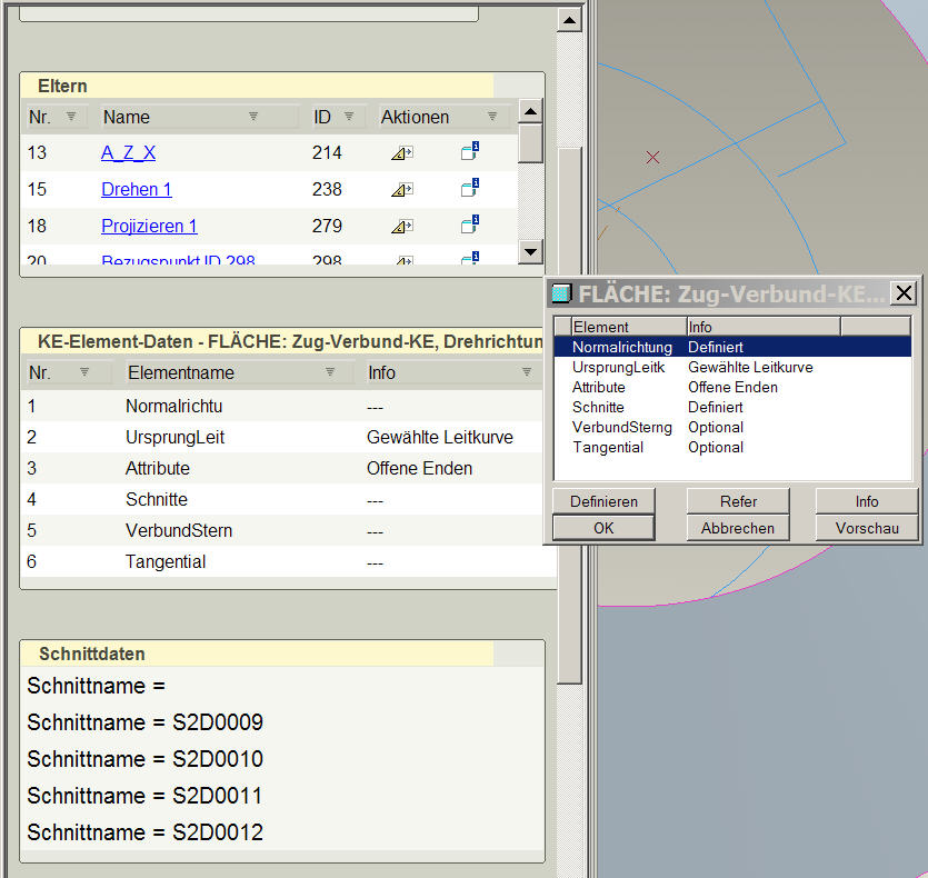 Diesen etwas aufwändigen Weg wollte ich eigentlich umgehen. Da ich einen Verbundkörper mit 4 Schnitten in unterschiedlichen Lagen habe, gibt es hier eindeutig ein paar Eltern mehr als biologisch möglich. Ich habe es aber inzwischen über diesen Weg herausbekommen. Die besondere Gemeinheit war, dass die Referenz der Normalenrichtung auch als Referenz für einen der Schnitte verwendet wurde und daher natürlich nicht doppelt aufgeführt war. ------------------ ---------------- "Ich stimme mit der Mathematik nicht überein. Ich meine, daß die Summe von Nullen eine gefährliche Zahl ist." (Stanislaw Jerzy Lec) Eine Antwort auf diesen Beitrag verfassen (mit Zitat/Zitat des Beitrags) IP |