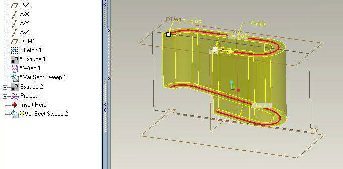 Hallo Felix, ProE bietet Dir die Schnittpunkte der Leitkurven mit der Skizzenebene an. zumindest bei der unteren Kurve sieht es so aus, als ob diese die Skizzenebenen an dem Ende garnicht schneidet, sondern erst hinten. Überprüf mal, wo die Senkrechtenebene am Startpunkt der 1. Leitkurve die andere Kurve schneidet. ------------------ Gruß, :cybernuth: Eine Antwort auf diesen Beitrag verfassen (mit Zitat/Zitat des Beitrags) IP |
