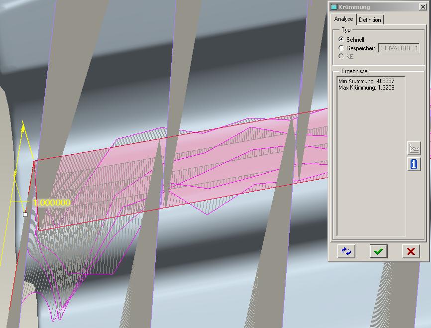 Und nun kommen wir doch mal wieder zu der ursprünglichen Frage, bei der es nicht um die IE-Einstellungen ging. Meiner Meinung nach kannst du da nichts machen, außer du verbesserst die abgetastete Oberfläche oder du modellierst das Teil nach. Beides sind sicher nicht die Alternativen, welche du hören wolltest. Aber wenn die erzeugte Oberfläche nicht der tatsächlichen Oberfläche entspricht kannst du eben keine besseren Ergebnisse verlangen. Einen Filter wie bei der Rauhigkeitsmessung kann man für die Pro/E-Abstandsmessung leider nicht vorschalten. ------------------ Gruß Udo Keine Panik, Du arbeitest mit Pro/E! Und Du hast cad.de gefunden! Neu hier? Verwundert über die Antworten? Dann schnell nachfolgende Link durchlesen.  • Richtig Fragen • Nettiquette • Suchfunktion • System-Info • 7er-Regel • Unities Eine Antwort auf diesen Beitrag verfassen (mit Zitat/Zitat des Beitrags) IP |
