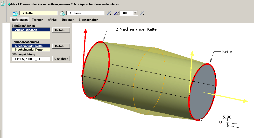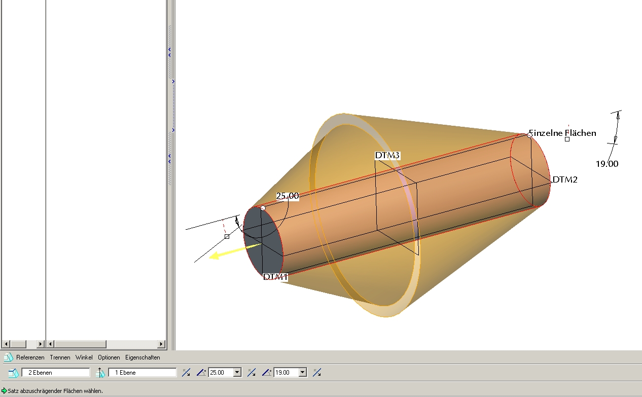 Die Auswahl des Schrägenscharniers bestimmt doch die "neutrale Faser". Wieso sollte sie daher unabhängig vom Schrägenscharnier sein  . Man kann sich streiten, warum es bestimmte Restriktionen bei der Verwendung von Neutralebene bzw. Neutralkurven gibt. Im Vergleich zu ProE 2001 finde ich die Schrägenfunktion in Wildfire x.0 wirklich paradisisch (ich sag nur: Einbahnstraße Neutralkurve/Neutralebene). Gruß Thomas