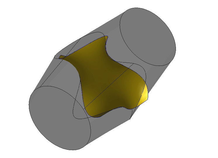 Die hier geschilderten Einschränkungen für die Trennsammelfläche sind nicht notwendig. Die Sammelfläche muss weder flach sein, noch muss die Berandung mit der Außenkontur abschließen. Die Fläche kann über die Schrägenfläche hinausragen (wie bei Meikes Beispiel). Sie kann sogar innerhalb der Schrägenkontur liegen. ProE muss dann aber die Chance haben die Flächenberandung selbstständig zu verlängern... Auch sowas wie auf dem Bild ist also auch möglich. Inwieweit das technisch sinnvoll ist, überlass ich der Einschätzung des Betrachters. Gruß Thomas [Diese Nachricht wurde von tommyboy am 16. Jun. 2008 editiert.] Eine Antwort auf diesen Beitrag verfassen (mit Zitat/Zitat des Beitrags) IP |