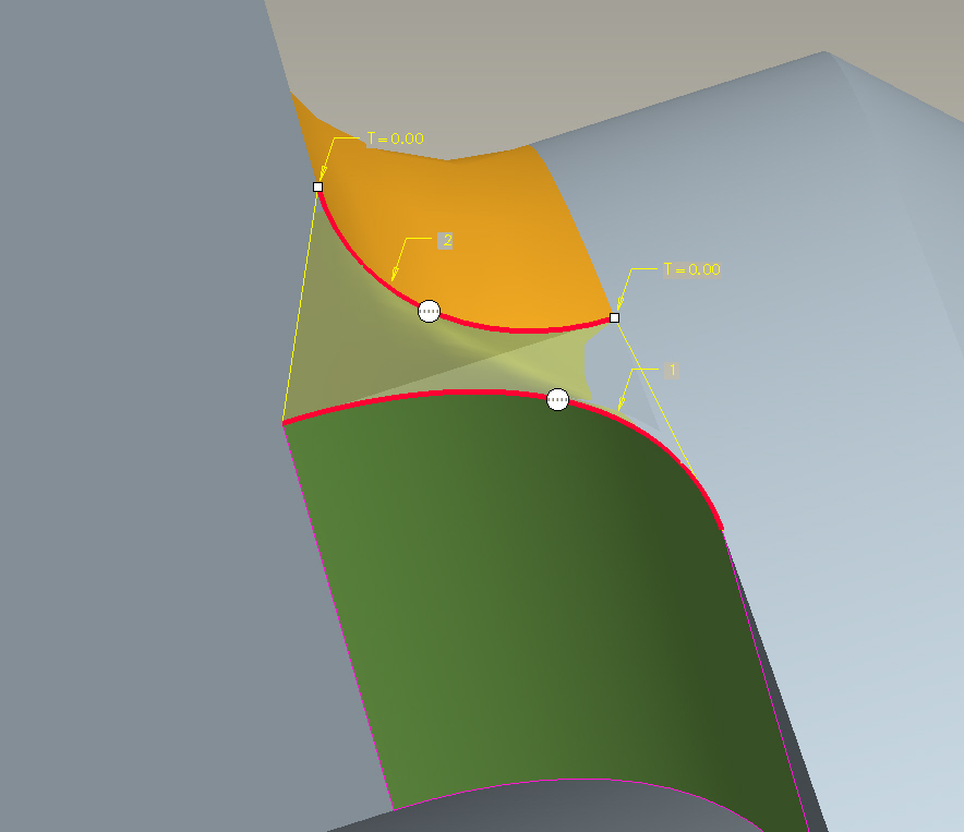 Hallo und Herzlich Willkommen im Forum. Ich muss Arni Recht geben. ProE hat so alles richtig gemacht und streng geometrisch gesehen sieht das halt so aus. So aus der Hüfte geschossen: Man könnte den Radius, der in Deinem Bild als grüne Fläche dargestellt ist, auch als variablen Radius gestalten, der dann nach oben in einen sehr kleinen Wert übergeht. Voraussetzung hierfür ist allerdings, das es sich wirklich um eine Rundung handelt. Ist ein wenig hingepfuscht und ich habe es selbst noch nicht ausprobiert, könnte aber gehen. ------------------ Grüße aus OWL, Thomas CAD.DE macht Spaß! Wichtige Links für noch mehr Spaß: Richtig Fragen - Nettiquette - Suchfunktion - System-Info - 7er-Regel - Unities ProE macht Spaß - viel ProE macht viel Spaß ! (Zitat, frei nach meinem ProE-Beibringer) Eine Antwort auf diesen Beitrag verfassen (mit Zitat/Zitat des Beitrags) IP |