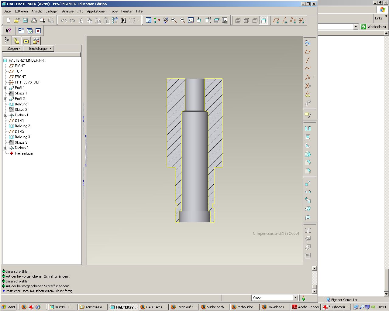 Habe gerade mal bei mir in den Systeminfos geschaut, und da stand meine ProE-Version eigentlich schon drin, aber da hat sich irgendwie ein <P/> oder sowas in der Art reingeschludert, sodass das nicht komplett angezeigt wurde. Jetzt müßte es aber wieder zu sehen sein. Den Schnitt brauche ich in der 3D Ansicht, weil das so in einer Veröffentlichung zur Veranschaulichung und Ergänzung des Textes dienen soll. An einzelne Bauteile sollen dann nachher noch Nummern dran, damit man schön darauf verweisen kann(aber das werde ich dann wohl nachträglich mit PPT machen). Also bei dem einzelnen Bauteil kann ich die Schraffur ändern, bei der Baugruppe nicht. Die Strichstärke müßte ich ein bißchen hochsetzten können, weil wenn ich die Baugruppe drucke und mir das Bild dann anschaue, verschwinden die Linien der Schraffur teilweise. Das hängt wohl mit der Auflösung zusammen, aber wenn die Striche was dicker wären hätte ich damit vielleicht kein Problem mehr. Den Zonenschnitt hatte ich benutzt, weil ich in diesem Fall mit dem Planar/Stufenschnitt nicht zurecht gekommen bin - ist der Stufenschnitt bezüglich der Schraffurparameter etc. besser zu handhaben? Besten Dank! - Knut - Eine Antwort auf diesen Beitrag verfassen (mit Zitat/Zitat des Beitrags) IP |
