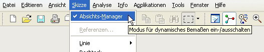 Es öffnet sich auch kein Fenster, falls du das meinst. Beim Absichtsmanager handelt es sich "nur" um die Anzeige von Kriterien wie Tangential, Vertikal oder Horizontal. Wenn du z.B. eine Linie auf einem Kreis zeichnen willst, dann zeigt er dir ein "T" an, womit er "tangential" sagen will und dir vorschlägt, dass die Linie halt tangential auf dem Kreis beginnen soll. Falls du das nicht willst, dann einfach den Menüpunkt deaktivieren. Eine Antwort auf diesen Beitrag verfassen (mit Zitat/Zitat des Beitrags) IP |