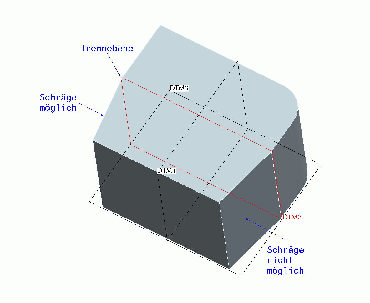 Du kannst eine Fläche, welche an einem Radius endet nicht abschrägen. Leider ist es ProE egal, ob Du vor dem Radius schon die TRennung hast. Sobald der Radius erkannt wird, werden alle anderen Eingaben nicht mehr umgesetzt. Kannst Du den Radius nicht hinterher erzeugen? Wegen einer Sysinfo: Es kann sein, daß Du zwar für das ProE Forum Deine Sysinfo eingetragen hast, aber in Deinem Profil steht keine drinn. Dann meckert das System. Und bitte in Zukunft nur eine Frage pro Beitrag Meike ------------------ Neu hier? Verwundert über manche Antworten?  Wichtige Links für noch mehr Spaß im WBF: Richtig Fragen - Nettiquette - Suchfunktion - System-Info - 7er-Regel - Unities Eine Antwort auf diesen Beitrag verfassen (mit Zitat/Zitat des Beitrags) IP |