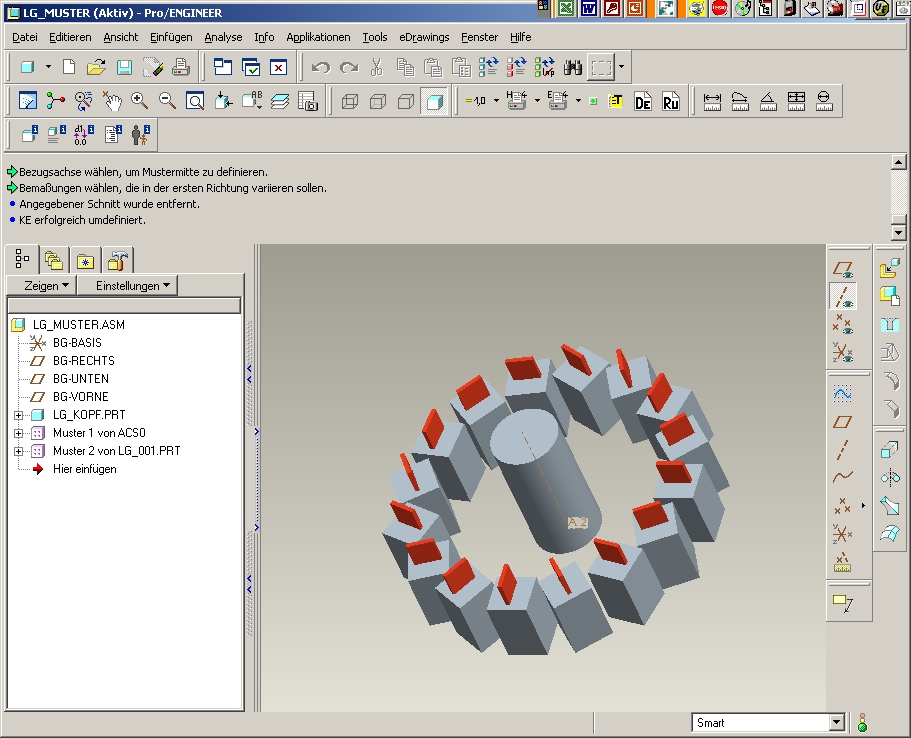 Bisher habe ich es nur geschafft, die Referenzen des Teiles zu Mustern, und diese dann manuell einzusetzen und den zugehörigen Winkel b einzugeben.