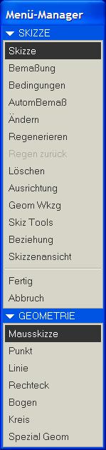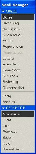 Ich glaube ich weiß was Du meinst. Das ist eine Funktionalität, die seit der Version 20 nicht mehr genutzt wird. (Ist so ca. 9 Jahre her...) Geh mal in der Skizze oben auf das menü #Skizze. Dort gibt es den Punkt #Referenzmanager. Wenn Du den deaktivierst hast Du rechts wieder den Menümanager. Aber glaub uns: Alles was Du dort machen MUßT, macht der normale Skizzierer von alleine. Also automatisch die Maße erzeugen (welche Du nach belieben aber auch selber erzeugen kannst) oder die Referenzen setzen. Meike ------------------ Neu hier? Verwundert über manche Antworten?  Wichtige Links für noch mehr Spaß im WBF: Richtig Fragen - Nettiquette - Suchfunktion - System-Info - 7er-Regel - Unities Eine Antwort auf diesen Beitrag verfassen (mit Zitat/Zitat des Beitrags) IP |