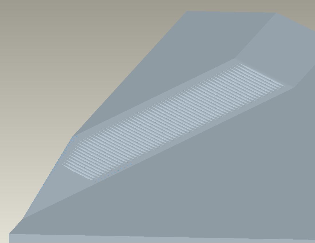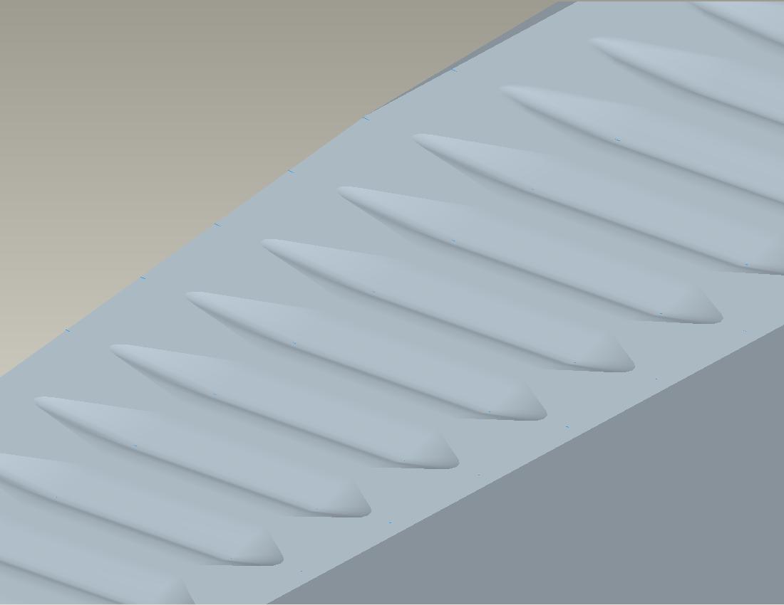 Vorgehensweise: Ich habe eine Ebene in die Mitte des Keils gelegt und von dort aus die Profilnut zu beiden Seiten extrudiert (Material entfernt), siehe dazu "profiliert3". Anschließend wurde die Profilnut mit einem Muster entlang der unteren Kante und über Inkremente in der Länge zu beiden Seiten verändert. Um den Auslaufbogen, der in "profiliert4" (in nächstem Beitrag angehängt) sichtbar ist, an beiden Seiten der Profilnut zu konstruieren, habe ich ein Zug_KE benutzt. Allerdings besteht hier das Problem. Der Auslaufbogen kann nicht über das Mustern-Tool an jede Profilnut angelegt werden und in der LÄnge variieren, obwohl die gemusterte Leitkurve vom Scheitelpunkt der Profilnut bis zur Kante des Keils anliegt.