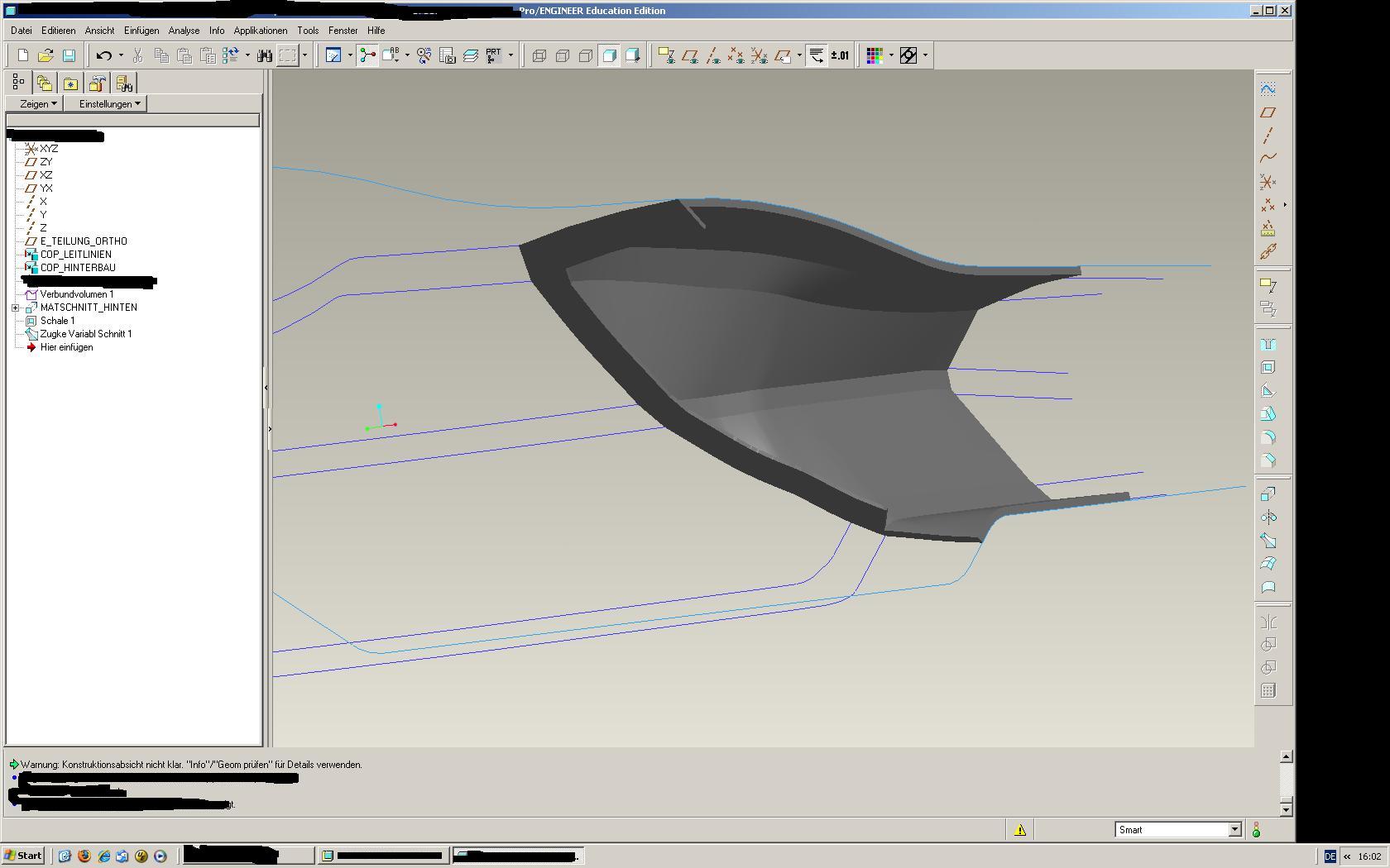 Kann mir jemand einen Tip geben, wie ich diese Falz erstellen kann? Wenn ich es mit Zug-Ke versuche, meckert er, weil es nicht durchgehen tangential ist. Außerdem führt er den 45° Winkel von der Oberkante auch unten weiter, was nicht zweckdienlich ist.
