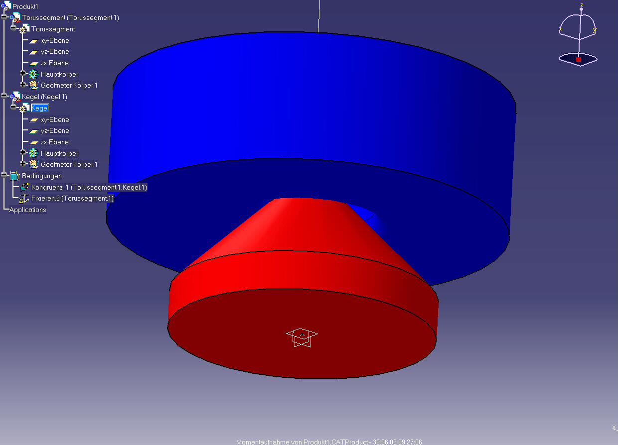 Hallo Kollegen,ich habe folgendes Problem: Ich sollte einen Kegel an einem verrundeten Loch positionieren. Die Kongruenz der Achsen ist klar. Nur bei dem Flächenkontakt zwischen der Kegelmantelfläche und dem Torussegment bekomme ich keine Beziehung hin. Kann mir da jemand helfen? Im Voraus schon mal vielen Dank