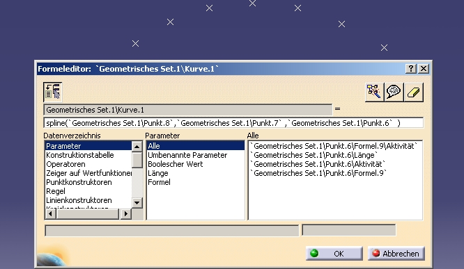Dann einen Parameter Typ "Kurve" erzeugen. Auf diese Kurve kannst Du dann mit Formel (bei Drahtkonstruktoren suchen) einen Spline erzeugen, durch Auswahl der Punkte. Wenn Du genügend Punkte hast, solltest Du den OriginalSpline annähern können. Du kannst ja nachträglich noch Punkte zufügen, oder verschieben.