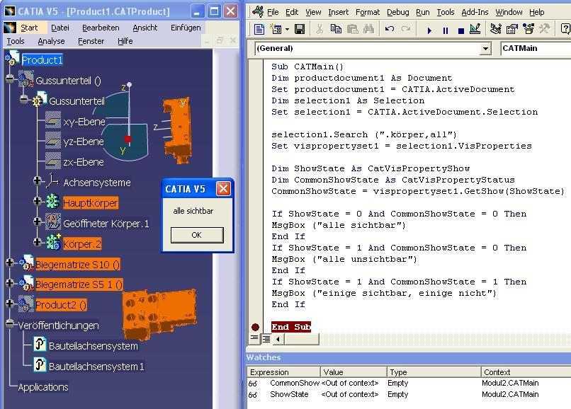 Und zwar will ich in einer komplexen Produktstruktur einzelne körper bearbeiten, und das nur wenn sie im obersten Product immernoch sichtbar sind. Die visibilityProperties abzufragen is ja eigentlich über ne selection kein Thema ich will das Prozedere aber nicht in jeder Stufe der Struktur wiederholen und nachsehen ob das übergeordnete object auch sichtbar is. Will also wissen ob von meinem selectierten Element bis in die "Product-Wurzel" alle Objecte visible sind.